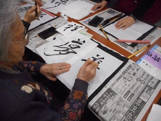 書道は先生役をご利用者様にお願いし、他のご利用者様が熱心に習っていました。