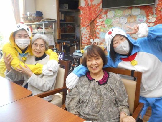 最後は昼休み中に駆けつけてくれた、訪問介護のサービス提供責任者則安さん・A様・K様との笑顔写真♡またスタッフとの笑顔写真です
