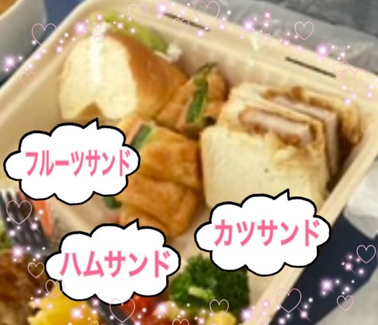 カツサンド ・ハムサンド・フルーツサンド豪華お昼ご飯で、