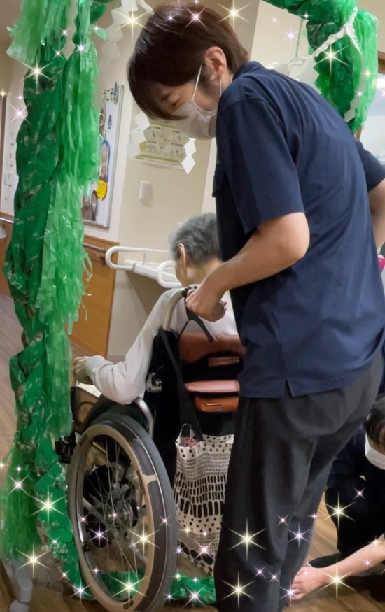 転倒予防の為、スタッフが付き添いながら安全に移動されました