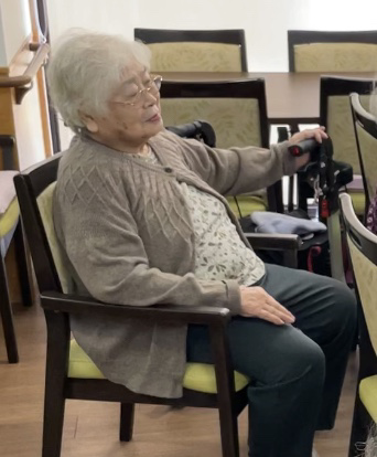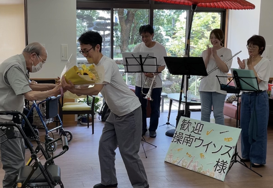 ご利用者さまを代表しSさまに花束をお渡しいただき、