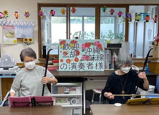 8月のとある日、沖縄三味線と二胡の演奏者の方の訪問がありました(^^)/