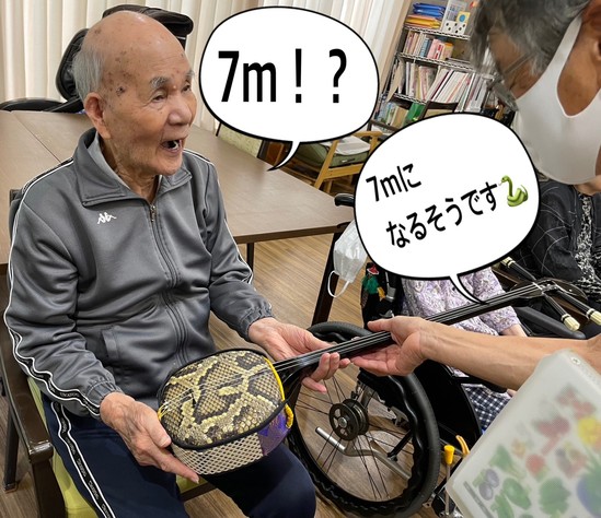 こちらの先生の三味線は本物の蛇の皮を使っているそうなんですが、