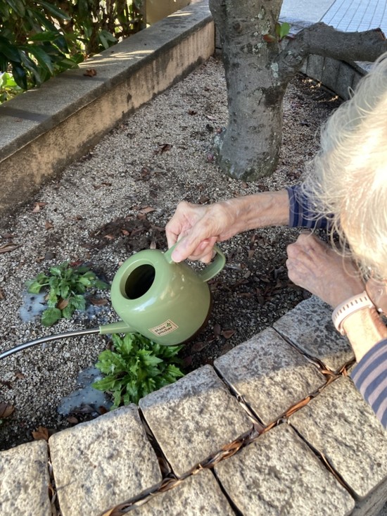 先日ご入居者様のM様と花壇にお花を植えました。