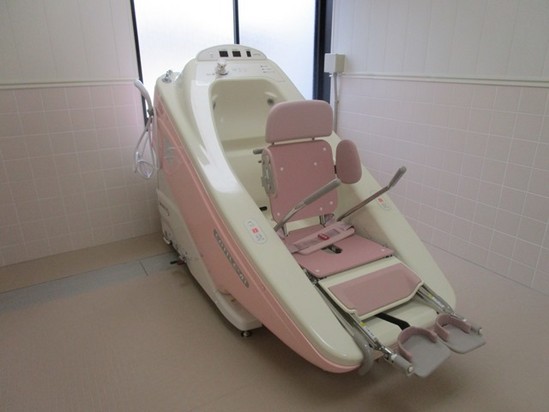 アルファリビング岡山後楽園では、浴槽のまたぎが難しい方や立位がとれない方でも特殊浴槽にて入浴が可能です。