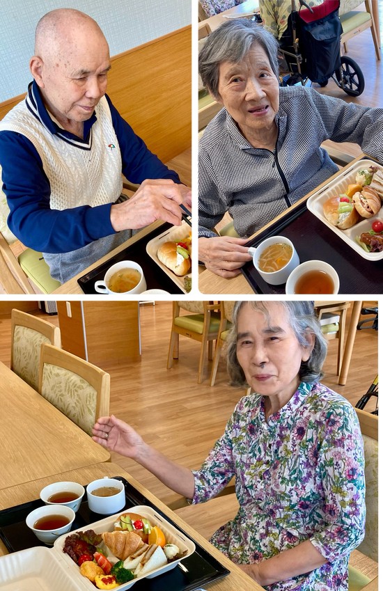 </span> ・煮込みハンバーグ・ミニコロッケ&オムレツ・フルーツ・スープ