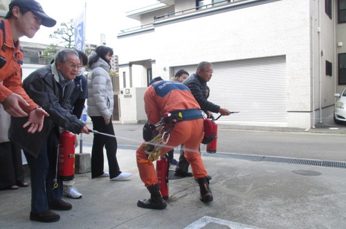 一階駐車場で消火訓練を行いました。