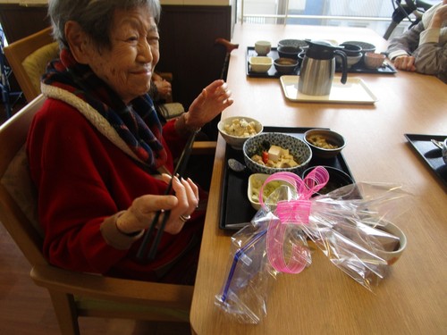 2025年03月11日(火) みんなに褒められて・・・(⋈◍>◡<◍)。✧♡ 午前利用のデイサービスから帰宅したk様。 「見てー!いただいたんよ」と昼食中のレストランへ★ デイのスタッフから誕生日プレゼントで写真立てを もらったとお話されていました。 「わーーーーーーー!どしたーん!綺麗に写ってーーー」 「表情がものすごくきれいじゃないのー」 「花の色と合うねーーーー」 「お誕生日おめでとうございます」 みなさんからお祝いされ、褒められて・・・ k様にっこり♡ みんなでお祝い・・いい光景でした(^^)/ うれしいこと・よろこばしいこと・・・みんなで共有。 みんなで分かち合える環境が「安心」にもつながると思っています(^^♪ 「すてきな1年になりますように」 随時、ブログ更新中! 「アルファリビング松山久万の台」のブログは・・・ /kumanodai/blog/ 「アルファリビング松山よつば」のブログは・・ /yotsuba/blog/