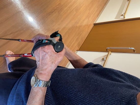 何をされているのかお伺いすると、登山用の杖を持ち廊下を歩くのが毎朝の日課なんだとか