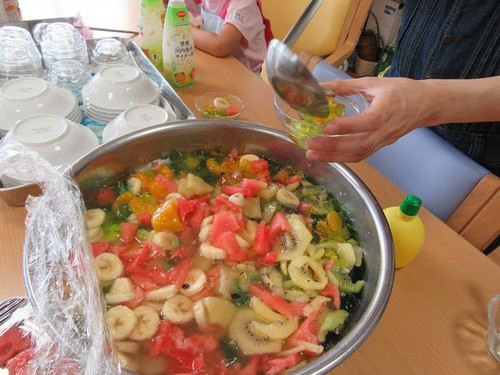 先日皆さんでフルーツポンチ作りをしました☆