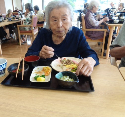 2023年06月29日(木) おたのしみのメニュー(^^♪ みなさんこんにちは キララさんです( *´艸`) 6月28日のお楽しみメニューを紹介します!! こちら! 牛肉のお寿司でした!! デザートは、あじさいゼリー!! とってもおいしかったですよ(#^^#) それでは、入居者様の様子ものぞいてみましょう!! 「牛肉がのっているのうれしいね!!」と笑顔で話してくれた入居者様がいたのです。 豚肉や鶏肉はよく出ますが、牛肉は特別ですからね!! 今回も楽しんでいただけたかな? 次回のお楽しみメニューはなんでしょうか?? ワクワクしますね(^^♪ それでは、次のブログでお会いしましょう・・・。 byキララさん「アルファリビング松山本町」のブログは・・ /honmachi/blog/「アルファリビング松山よつば」のブログは・・ /yotsuba/blog