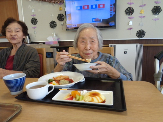 入居者様の美味しそうな笑顔です。。。