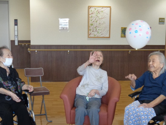 皆さん、必死に風船を目で追われ落とさないようにしっかりと腕を伸ばされていました