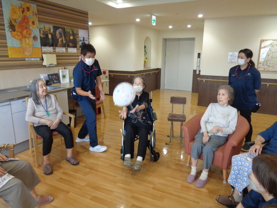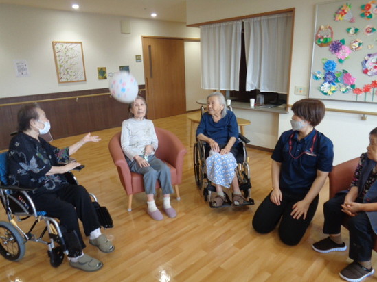 8月は4階フロアがレク担当だった為、8月27日に談話室にて風船バレー大会を開催しました(/・ω・)/
