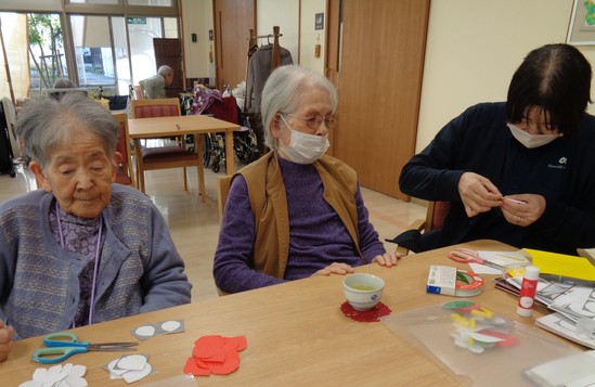 2025年02月19日(水) ~ただいま創作活動中♪♪~ こんにちは久万の台デイのちーこです(*^^*)ただいま久万の台デイでは、折り紙での創作活動が行われています☆ 物を作るのがお好きとのことのM様とY様(*^-^*)はでぃ先輩、真剣です 綺麗な椿のお花が完成し、皆様「わ~できた!!お部屋に飾ろうわい(*^-^*)」と笑顔で喜ばれていました♡アルファリビング松山本町」のブログは・・ /honmachi/blog/「アルファリビング松山よつば」のブログは・・ /yotsuba/blog