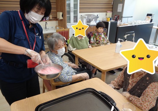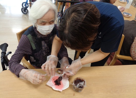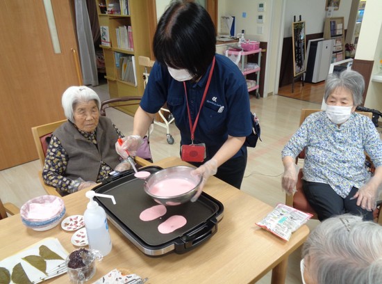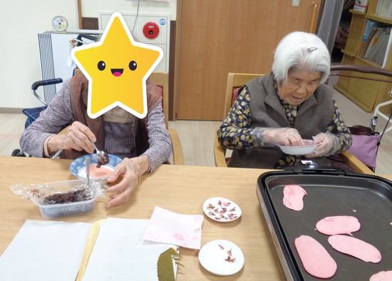 早速ですが本日、久万の台デイでは桜餅イベントを開催しました