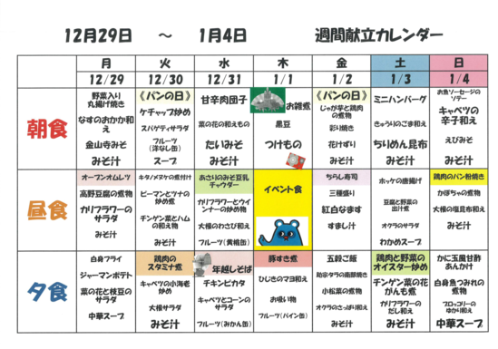 そして 2025年最週の週間メニュー表を
