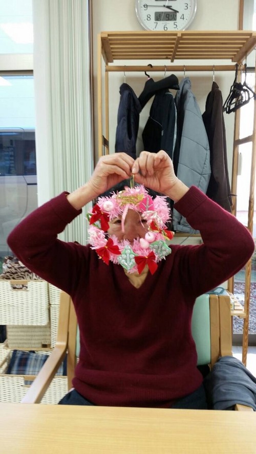 先日、皆でXmasリース作りをしました♪