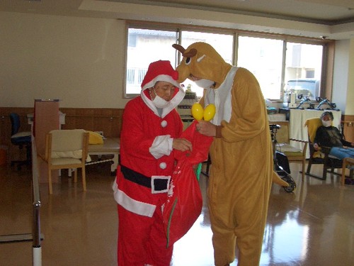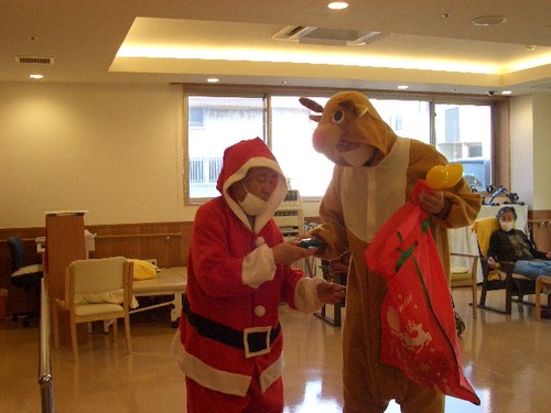 2022年01月11日(火) サンタさん参上 デイサービスにサンタさん(入居者様扮装)とトナカイさん(デイ管理者)が登場 何やらゴソゴソ 取り出したのはプレゼントでしたMaryChristmas 更新中!! 「アルファリビング松山久万の台」のブログは・・・ /kumanodai/blog/ 「アルファリビング松山本町」のブログは・・・/honmachi/blog/