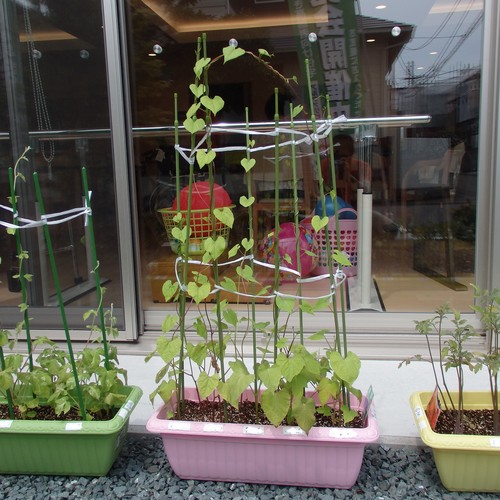 朝顔はつるがどんどん伸びて