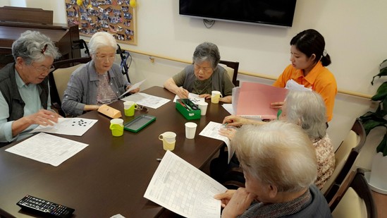 施設では午後から脳トレーニング