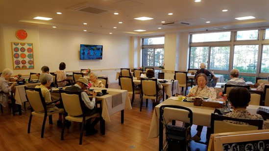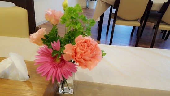 2016年08月20日(土) お昼ごはんの様子☆ こんにちは アルファリビング福岡原です 本日はお昼ご飯の様子をご案内 食事時間は毎食2時間あるのでゆっくりと使って頂けます レストランのテーブルにはお花を ピンクのガーベラが可愛いと好評です