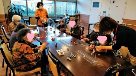 2021年02月24日(水) ☆ レクリエーション ☆ 今日はひな人形作りの レクリエーションを行いました 紙ねんどとちりめんの布で作ります 切ったり貼ったり 手先を使う作業です。 じゃじゃ~ん 可愛らしい お内裏様とお雛様が 出来上がりました