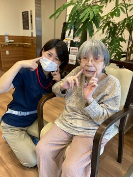 2021年10月02日(土) ☆ 訪問リハビリ中 ☆ 訪問リハビリで歩行訓練後、 玄関のイスに座って一休み 「はぁ、疲れた~」と おっしゃいつつも、 カメラを向けると素敵なポーズを して下さいました 「さぁ、お部屋に戻って 水分補給しましょう」