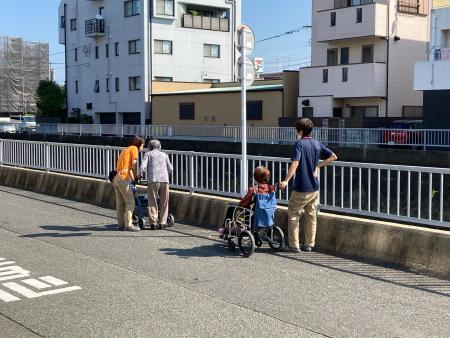 外へ歩行訓練に出かけます