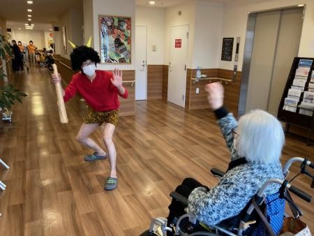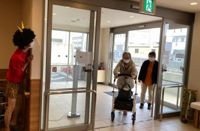 2022年02月12日(土) ☆ 節分④ ☆ さっきと違う赤鬼が登場 みなさん、けっこう本気モードで お手玉をぶつけていました(笑) 「鬼はそと~!!!」 待ち構えている鬼… 「あははは あんた、なんしょうとね?」 笑われる鬼… 退治される鬼… とてもにぎやかな節分でした