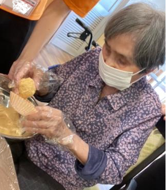 2022年04月28日(木) ☆ おはぎレク② ☆ あんこのおはぎが完成したので 次は・・・ きなこのおはぎです しっかりきなこをまぶしたら カップに入れます きなこのおはぎも完成しました さぁ、いただきましょう その③へつづきます