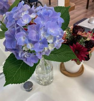2022年05月22日(日) ☆ 訪問理美容 ☆ 今月も 訪問理美容 ディチャームさんに 来ていただきました 30℃近くまで 気温がぐんと上がり日もあり、 日差しが強くなってきましたね 今月もスッキリ、 さっぱりされました お花屋さんに アジサイがありました 沖縄は梅雨入りしたそうですね