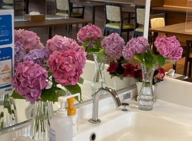 2022年06月23日(木) ☆ あじさい ☆ ムシムシした日が 続きますね 梅雨なのに、あまり雨が 降らず心配です… 職員がお庭に咲いたアジサイを たくさん持って来てくれました 大きくて、とてもキレイです ジメジメにも負けない 元気な職員たち 今日も頑張ります