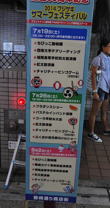 2014年07月24日(木) 土曜夜市 こんにちはアルファリビング福岡原です 夏はイベントが盛り沢山! 現在アルファリビング福岡原近くの 藤崎商店街で『土曜夜市』 が行われています 今年は7/19、7/26、 8/2の実施です楽しいイベントやお店がありますよ イベント盛り沢山の早良区でアルファリビング福岡原での生活を楽しみましょう(*^_^*)