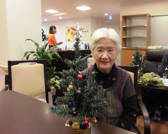 2014年12月04日(木) オリジナルツリー作り こんにちは家では準備が面倒でクリスマスツリーを出せていない羽立でございます 本日のレクリエーションではオリジナルツリー作りに挑戦しました 皆さんでワイワイ「あれがよい」「これがよい」と飾り物を並べお好きなものを選び楽しくツリー作りをしました 出来上がったツリーはお部屋に飾って下さるそうです ツリーと一緒に記念撮影です職員も楽しい時間を過ごせました