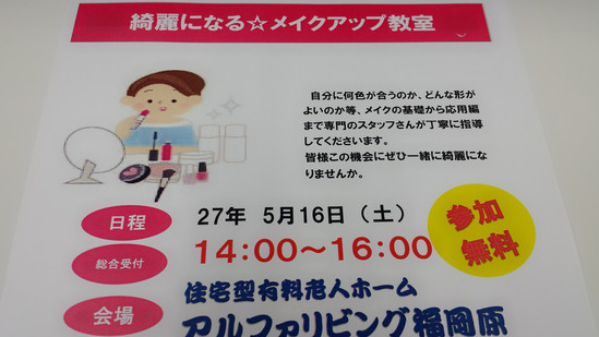 今月の施設イベントはメイクアップ教室を予定しています