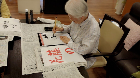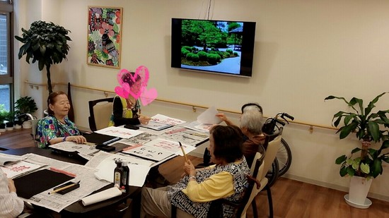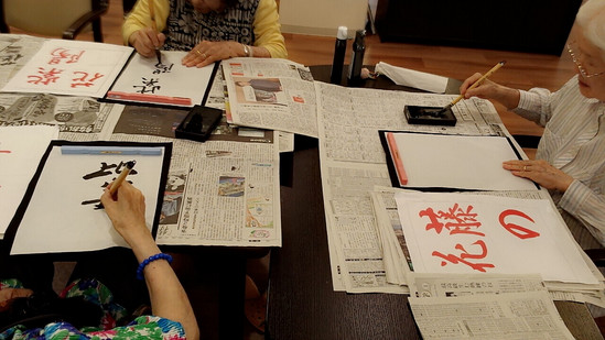 施設では心静かに書道教室