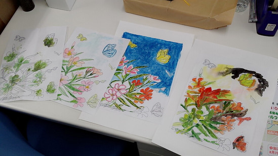2015年07月13日(月) 水彩画教室♪ こんにちはアルファリビング福岡原です本日のレクレーションは水彩画教室皆様それぞれの色使い1つの作品を1時間で仕上げる為に集中して取り組まれました完成作品はこちらとっても素敵ですね♡