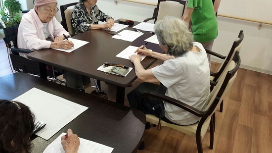 2015年08月01日(土) 漢字ドリル こんにちはアルファリビング福岡原です毎日暑い日が続いています、 体調管理お気をつけ下さい。 こちらでかなり人気の「脳トレ」 漢字ドリルをしました。 難しい顔をされながらも 熱心に取り組んでおられました。