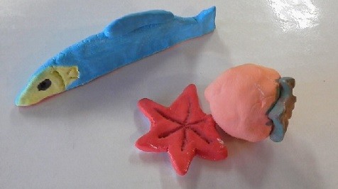 2015年11月05日(木) 完成! こんにちはアルファリビング福岡原です秋晴れが続いています、お出かけに最適ですね 乾燥させていた紙粘土の作品に色づけしました。ご覧下さい秋らしい作品の数々・・・柿、もみじ、秋刀魚 綺麗な色がついて本物のようですね