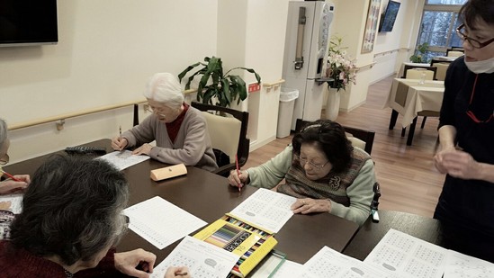 2016年01月25日(月) こんな雪の日は・・・ こんにちはアルファリビング福岡原です本日も雪の降り続く1日ですね施設では熱心にお勉強をされている皆様の姿が漢字の問題に慣用句などそれぞれ集中して取り組まれていました