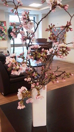 施設内の桜の花が満開になりました