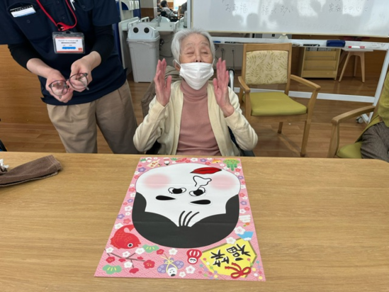 2024年01月04日(木) 福笑い【デイサービス】 皆様、明けましておめでとう御座います 本年もどうぞよろしくお願い致します さて、本日からデイサービスの営業を再開 みんなで福笑いをしました みなさん、初笑いでした