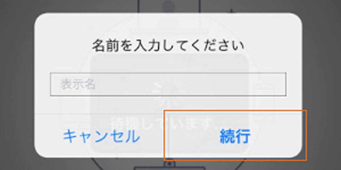 招待リンクを開くとポップアップメッセージが表示されます。「名前」にはミーティング中に表示させるご自身の名前を入力してください。入力が終わりましたら、下の「続行」のボタンを押してミーティングに参加できます。