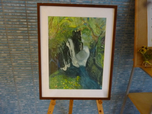 2016年07月08日(金) 画伯 玄関の画伯の絵が【あじさい】から【滝】にかわりました。 暑い日が続き、画伯に涼しげな絵がないかとお聞きしたら この滝の絵を出してくださいました。 玄関が涼しく感じると思ったら、今日は朝から雨でした・・・
