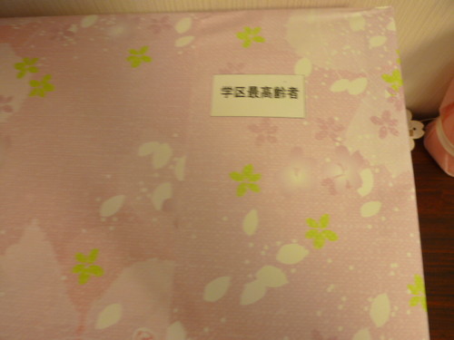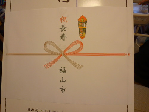町内の方が、「学区内で最高齢者の方がおられるので、市からお祝いの品があります。」と言って
