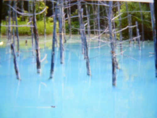 立ち枯れていく白樺と透明なコブルトブルーの水をたたえる池「青い池」は美瑛テッパン観光スポットと言われています