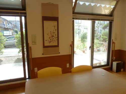 玄関入ってすぐ右手と食堂に素敵な墨彩画の掛軸を飾っています