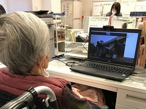 ご入居者様は、画面をみながら「うん、うん」と頷き熱心にご覧になってました。