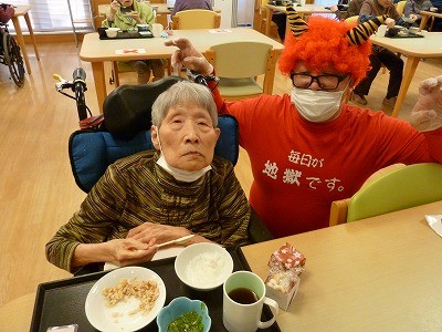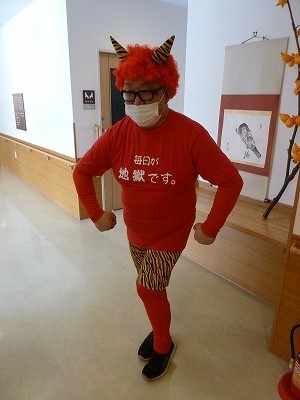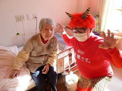 その日のお昼から赤鬼が襲来し、ご入居者様に恐怖(?)と笑顔を与えることができました。
